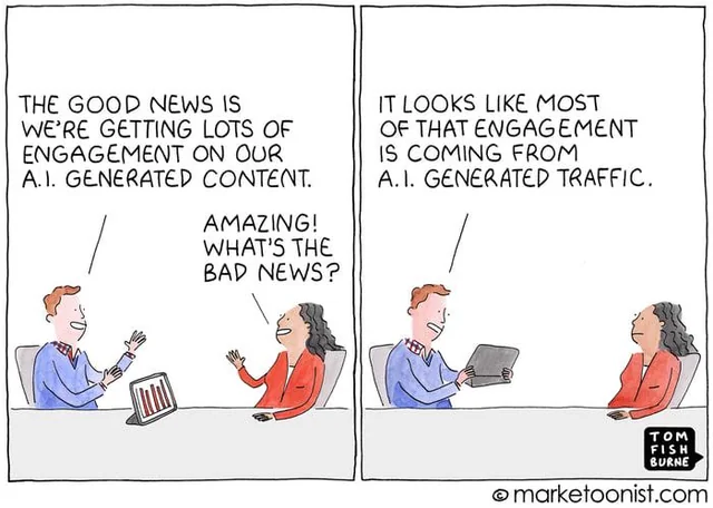 Ja i dalje cekam odgovor na to pitanje; ako AI zamjeni veliki broj radnika, ko ce im kupovati proizvode kada ljudi ne budu imali kupovnu moc. Postepeno ce iPhone ici u nebo sa cijenom jer ce se prodavati manje primjeraka, ali mora postojati masa koja kupuje bullshit. Obzirom da smo sada u ovoj fazi, ja cekam da ljudi iza reklamnog bloka reaguju jer promet prave botovi koji nista ne kupuju dok reklame odrzavaju internet i internet aplikacije. ![]() Imamo bot instagram profile kojima promet prave botovi. A uredno jedan lik uzima $ na advertisement. Ovim holivud go*narima sto ce gurati AI generisane likove, ja se nadam da ce im publika biti isto AI.