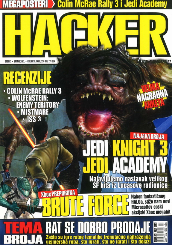 Evo nam srpanjskog broja iz 2003.g ![]() Za početak naslovnica, u prvom planu neka opaka aždaja, i tko bi rekao da je to najava nove Star Wars igre točnije Jedi Knight 3 Jedi Academy a koja je glavna najava broja. U ovome broju spominju se i Sims 2, zatim legendarni Call of Duty, a tu su i Silent Hill 3, Prince of Persia, spominje se i Halo za PC... Tu imamo recenziju za Wolfeinstein: Enemy Terotory, multiplayer koji je bio besplatan, međutim ja tada još nisam imao internet tj. ADSL tako da nisam ovo nikada igrao, a siguran sam da je bilo zabavno. Imamo i recenziju za Collin McRae Rally 3 koji sam u split screenu tjerao sa frendom, ali i jednu zanimljivu igru The Hulk, za koju mislim sada probati odigrati čisto iz fore, ali imamo i koljačinu u doslovnom smislu Bloodryne. Od hardwarea tu imamo zvučnike Boyin Surround 5.1 a koje sam tada ozbiljno razmatrao kupiti, kao i neki Yamahin receiver i to sve pospajati. Tu još imamo i neki vodič za nadogradnju PC-a i više manje to je to, uz pokoju sitnicu ![]() Također i ovaj broj dolazi u A3 formatu, kompresiranom obliku od 100 i kusur MB. U svakom slučaju uživajte! LINK: https://drive.google.com/file/d/1h7q...ew?usp=sharing |