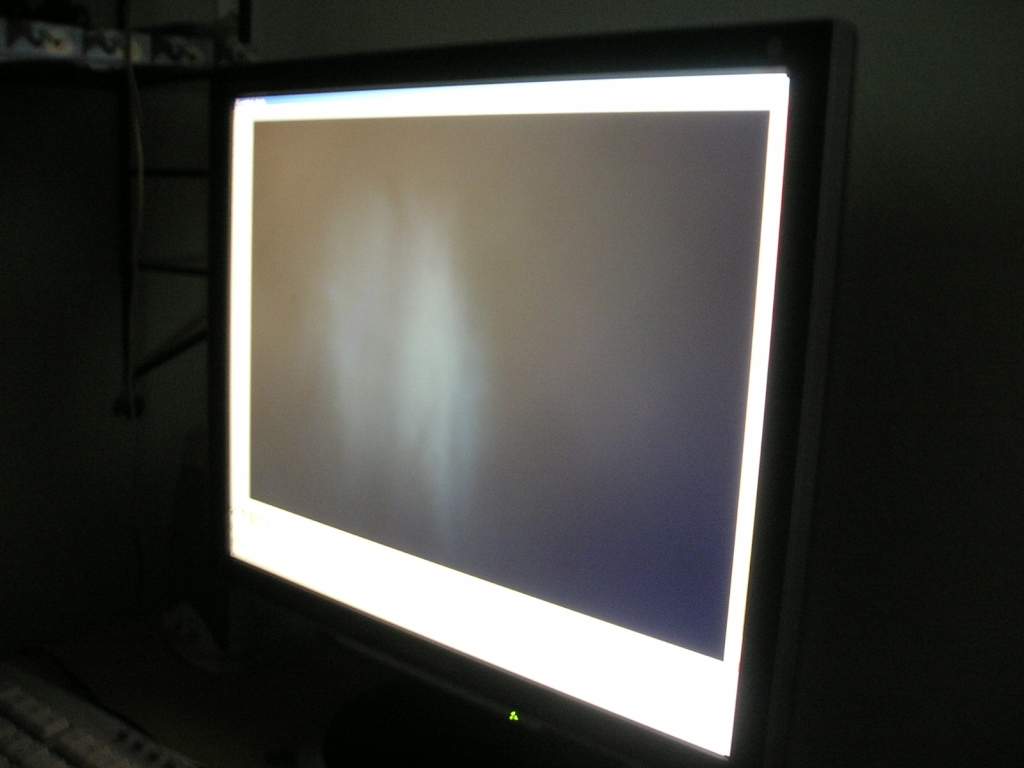 -ako neznaš što je to, onda bar nemoj lupat gluposti -monitor treba hitno reklamirati jer je otišlo pozadinsko osvjetljenje, i ili upravljačka elektronika monitora, a pošto imaš tri godine garanciju, ništa ne brini -to se ne smije vidit, i amen |