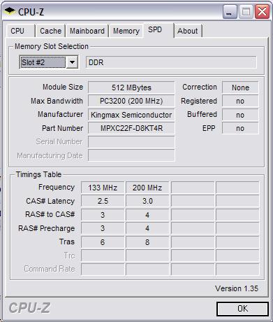 upravo sam kupio jos jednu plocicu od 512 rama... fino ja nju stavim unutra i... sranje... slike govore sve... pomagajte ljudi... obe su kingmax 400, razlika je u tome da stara koji se nalazi u prvom slotu ima chipove sa obje strane a novi samo na jednoj... u biosu namjestio da je ddr400, jedino postavke memorije, latencije i sta sve nema tamo su mi na auto!! komp mi je jos sporiji a da ne pricamo u dual chenelu koji ne postoji... bios sam nedavno skinuo najnoviji, matična je epox 9n-npa+... heeeeelp |