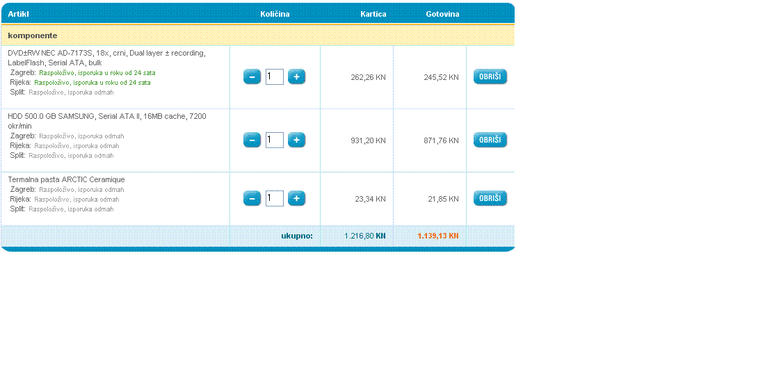 evo i mene ovdje... )))...ugl. to je komp koji bi ko' ja trebao kupiti...hehe... ...zahvaljujem Vasiliju na konfi, jos jednom... jedino sam razmisljao da od procesora uzmem E6600(1700KN) ...I od hrad diska Seagate Barracuda 7200, od 500GB SATA2 (1099KN) ![]() |