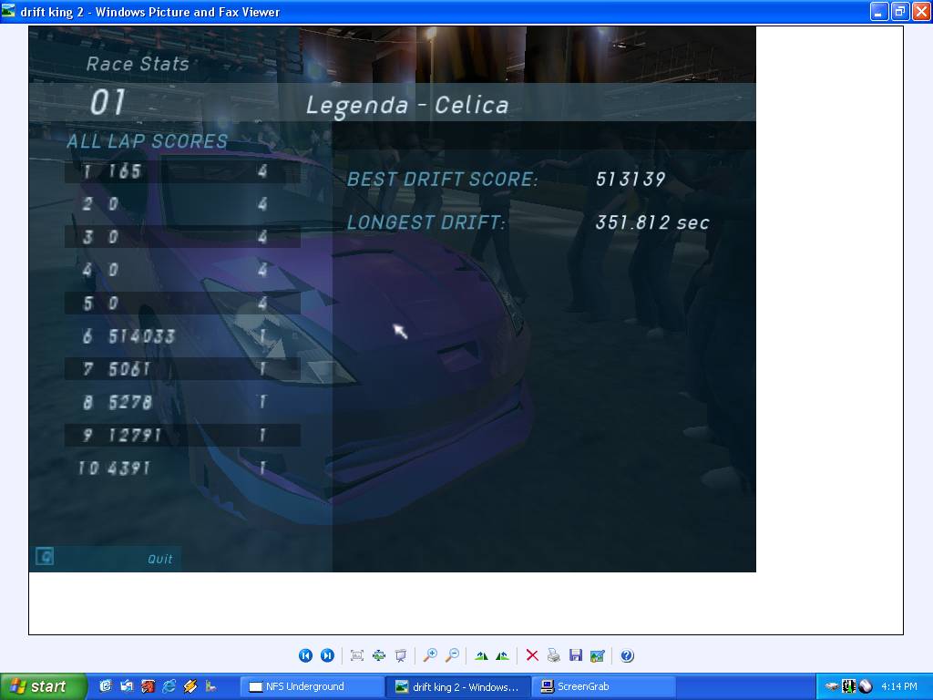 Evo vga killeru samo za tebe... 513,000 score 5 min i 51 sec drifta 6-i krug sve to na 6-oj stazi posto je najbolja.Stvarno steta sto nema replay P.S. ko zna da sam nest uzeo kolki bi rez bio ![]()