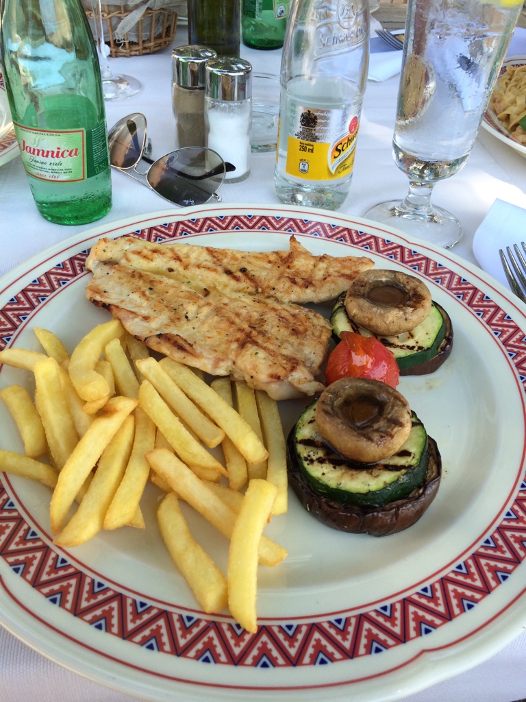 Pržena tunjevina u maslinovom ulju, krumpir prvo skuhan pa onda spržen, i kuhana bljitva. ![]()