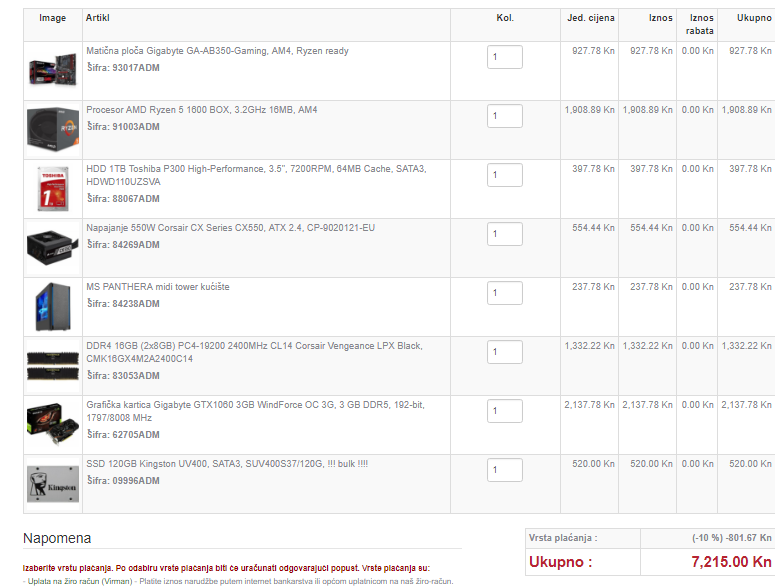 Čudna računica moram priznati, pogotovo jer je sa popustom...za 7k kuna se složi sa 1060 6gb + ssd. |