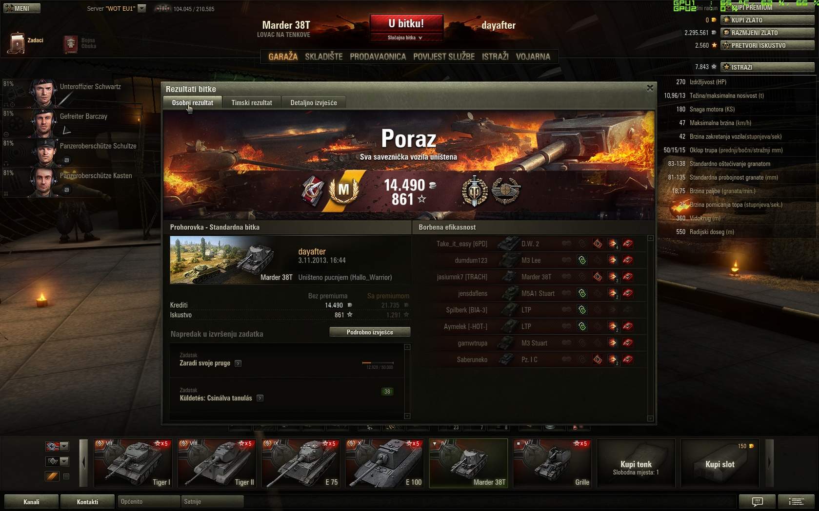 Nisu loši ti francuski tdovi, osim kad te arty pogodi sa boka ![]() Pokušavam stavit replay ali mi javlja grešku wotreplays. ![]() Dobio sam Ace na AMX 50 B nakon 15 partija, 6 kilova i 8200 dmg ![]() Čim srede stranicu stavim replay.