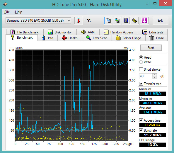 alo ljudi, imam evo 840 120gb, i primjetio sam u zadnje vrijeme da je nekako spor/iji i da ne radi uglađeno ko prije. inace ne tweakam komp , tj nisam neki guru ili heavy user, pc koristim za net i par programa s bazama podataka..., te od prvog dana od kad sam ga stavio i izmjerio do danas nisam ga više provjeravao i onda vidim da se ipak neko sranje događa i odem na ovu temu po kojoj sam ga i odabrao i vidim da nisam samo zabrijal. evo kod mene par slika, imam satu 2 (laptop) ovo je kad sam ga kupio ![]() danas, s tim da je bilo i 140mb read, kak koji test - oscilira jako, recimo zadnja slika je od testa koji je rađen poslije testa od predzadnje slike lol ![]() ![]() ![]() ![]() zanima me šta mislite hoće li to popravit nekim updateom, ono da li je to nov problem ili traje već dugo bez fixeva ili pokušaja istih, (jer ne pratim baš ćesto takve pc teme pa neznam) dal bi možda bilo najbolje ga vratit preko jamstva, jer meni je sad praktički sporiji od dobrog hdd-a pošto nemam na lapu sata 3, plus da imam filing da radi nekako shebano...... hvala Zadnje izmijenjeno od: ivca33. 22.09.2014. u 15:31. |
