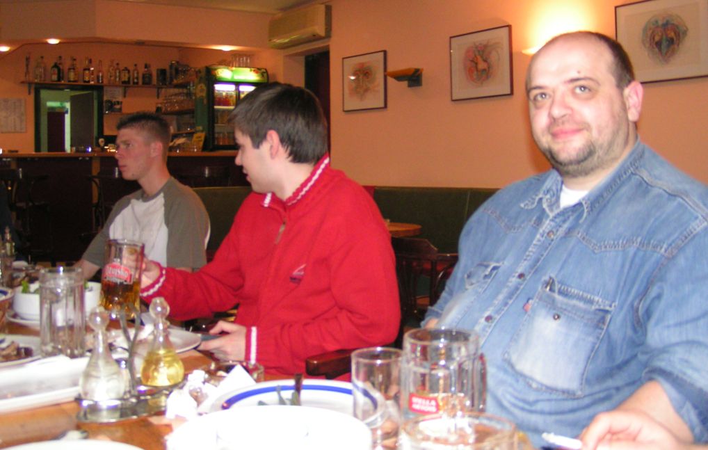 17. Fischer u revanšu sa Ribom, naravno riba ima ogromnu prednost u vidu izmorenosti sama (ja sam prije od njega izgubio, ali sam ga namučio), te što je jadan sam pojeo puno manje... http://www.imagesforme.com/viewer.ph...07DSCF0088.jpg 18. Otprilike pola minute nakon izjave "Ovaj puta neću raditi grimase", desilo se ovo: http://www.imagesforme.com/viewer.ph...71DSCF0090.jpg 19. Riba nastavlja dalje... http://www.imagesforme.com/viewer.ph...79DSCF0091.jpg 20. Ugodni razgovori nakon jela... http://www.imagesforme.com/viewer.ph...37DSCF0094.jpg 21. Svi važni ljudi ovog foruma i cod2 servera... http://www.imagesforme.com/viewer.ph...18DSCF0095.jpg |