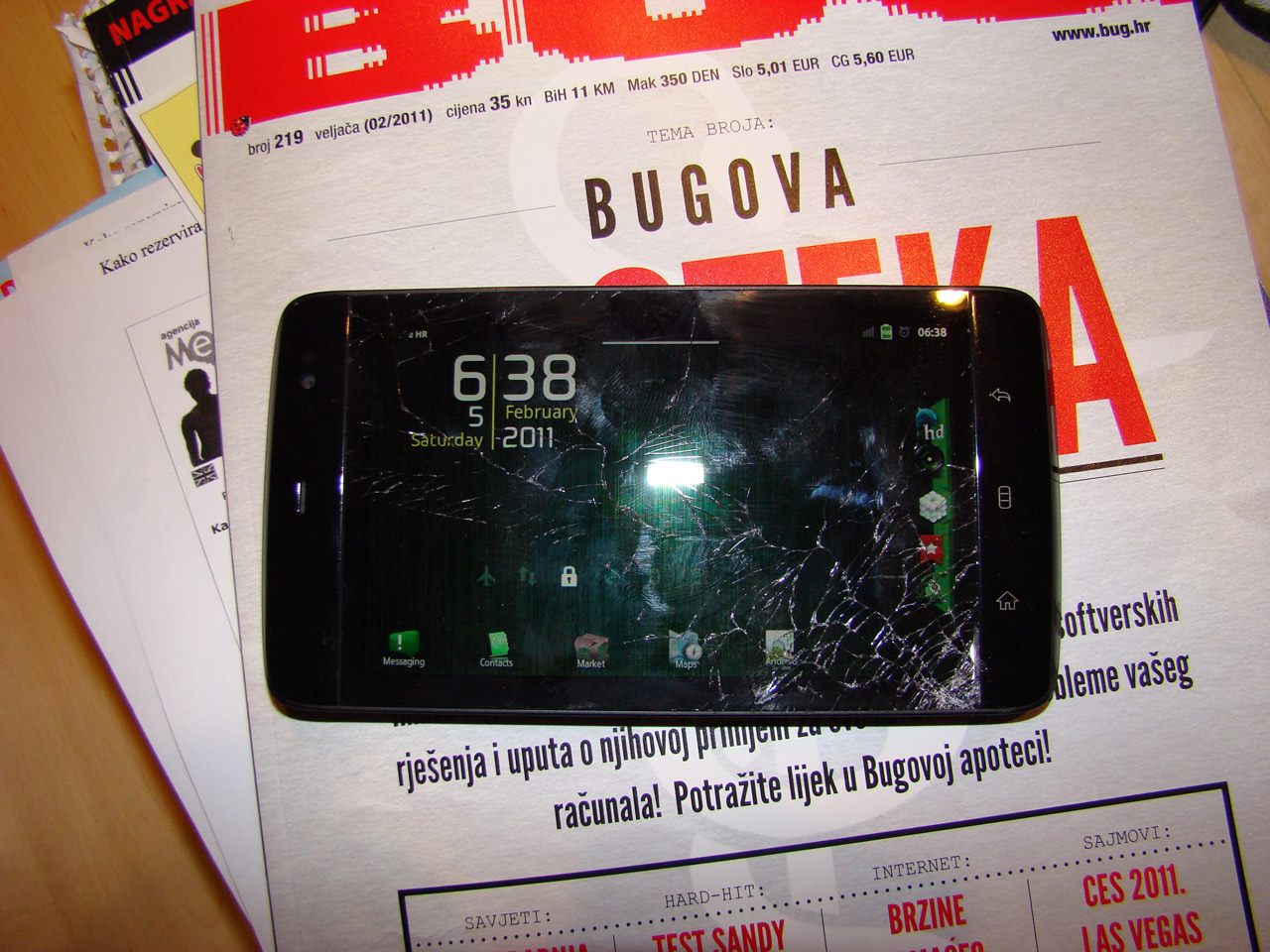 | Nemam pojma, ali evo mali update... pošto sam u beta test teamu za ROMove.. quadrant score mi je sad 2000 stock a 2500 full OC.. dobar ROM   Evo mali update u vezi mog Streaka  Taman jučer u jutro mi Streak napravio Face Plant..  za one koji ne znaju šta je to nek potraže na youtubu... Evo attachmenti slikani sa blitzem i bez blitza.. U živo izgleda 3 put gore... Sva sreća što je LCD cijeli osim malo u uglu. Touch radi bez greške, a sa ebaya je več jučer naručen novi LCD ekrana sa tim pripadajućim staklom... tako da sad moram polako klizit po njemu prstom da se ne porežem
