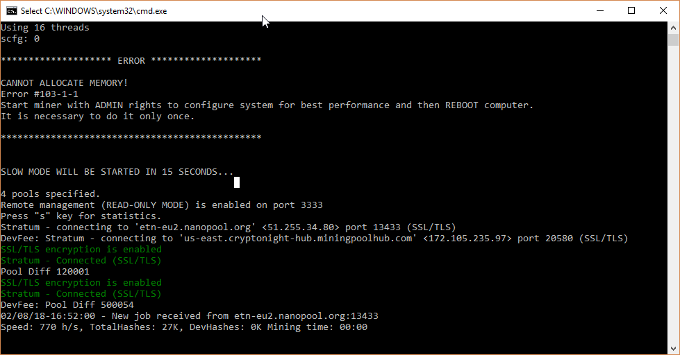 Skinuo claymore CPU miner, spojio sa etn.nanopool.org i dobivam izmedju 700 i 800 h/s Jel ne bi to trebalo vise ici? Kad kliknem na run as admin, samo mi se ugasi miner. |