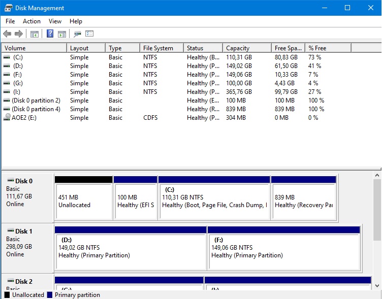Evo slika Disk Menagment nakon uspješne instalacije na proširenu particiju a na slici od jučer je slika prije proširenja. Ne vidi se sadržaj pa pokazuje 100% free ali se u Minitool Part. vidi zauzeće od 551.44MB. Da ne zaboravim u Minitool Part. se vidi još jedna puna particija od 128MB ispred svih ostalih particija. Zadnje izmijenjeno od: D/G. 30.01.2024. u 23:32. |