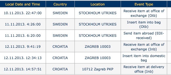 Zanimljivo kako nekad pise Stockholm Utrikes, i tada zaobidje carinu, a vecinom pise Singapore. |