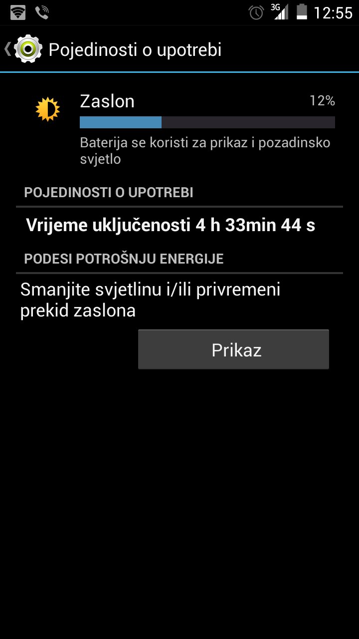 9,5 sati - 5,5 sati SOT upaljen 3G i igranje igrice od 10 ujutro pa do kad je zdržal 3 dana i 14 sati - 2,6 sati SOT uz upaljen ili 3G ili WiFi bez igrica i surfanja, samo razgovori, mailovi i poruke čak mi je nedavno poslije mora izdržal punih 5 (pet) dana - za mene sasvim OK Zadnje izmijenjeno od: dak0001. 28.08.2014. u 14:41. Razlog: nejasan upis |