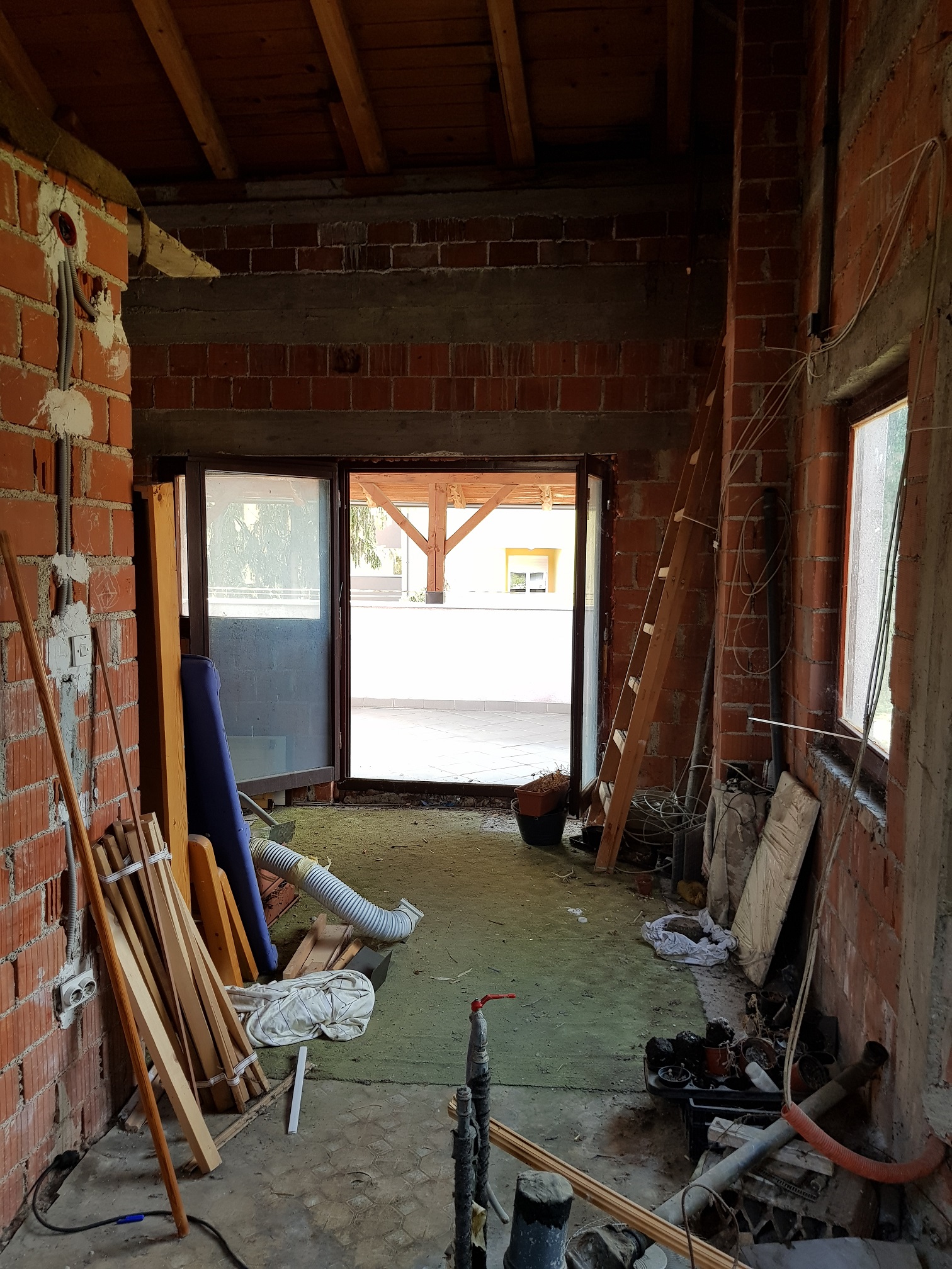 Sada su na 47-53%. U potkrovlju su bočni zidovi toplinski izolirani (stiropor). Samo krovište nije. Rogovi, daske, ljepenka i gerard pokrov. Na krovištu su ugrađeni odzračnici tako da ovo sa izvlačenjem zraka i stvaranjem podtlaka kod rigova ne igra. Slika od rigova prema terasi. Krovište je visoko pa ovo sa odsisom ne igra bez građenja sanduka oko rigova. Zadnje izmijenjeno od: Dambo. 24.04.2018. u 17:03. |