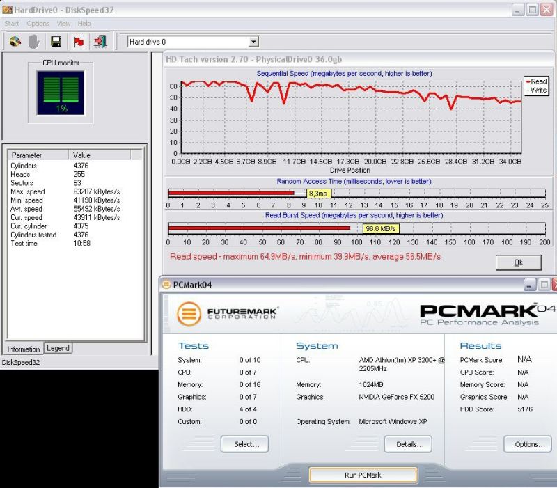što se raptora tiče prvo svrati i pročitaj članak na PCEkspertu (iako je unutra Raptor od 74Gb) a u attachmentu imaš rezultate mog (raptor od 36Gb) iz HD Tach 2.7 , DiskSpeed32 3.0 i PCMark04 |