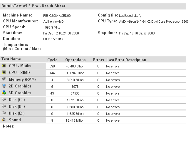 Pozdrav svima Krenimo objasnjavati cudnovati komp. Ovako kompjuter kod prijatelja radi ali izbacuje blue screen, a zna se i sam od sebe resetirati Vec je 3 puta kod mene i kod mene sve uredno sljaka, niti jednom blue screen, niti jednom restart Ovako sam ga testirao, prvotrtio sam cpu burn (20h), mem test (isto cca 20h), goldmemory, hdd test (cca 20h) i nikakva greska nije pronadena. Zamijenjena je memorija (dakle nova memorija iz ducana, koja radi u mojem kompu sasvim normalno) ociscen je komp od prasine, promjenjena pasta na cpu-u, zamjenjeno napajanje, stavljen novi win xp, i to je to, kod mene komp radi bez problema, ali kod frenda nikako, uvijek blue screen i restart (u random vremenu) u attatu se nalazi prilog testa (istina samo 15 minuta) ali sada vrtim 24h test, pa zasada je sve prolazno, kada zavrsim sa 24h testom postam. neka zamisao sto i kako sa ovim kompom? EDIT BY MOD: Drugi puta piši malo smislenije naslove... http://forum.pcekspert.com/showthread.php?t=47660 Zadnje izmijenjeno od: domy_os. 14.09.2008. u 22:29. |