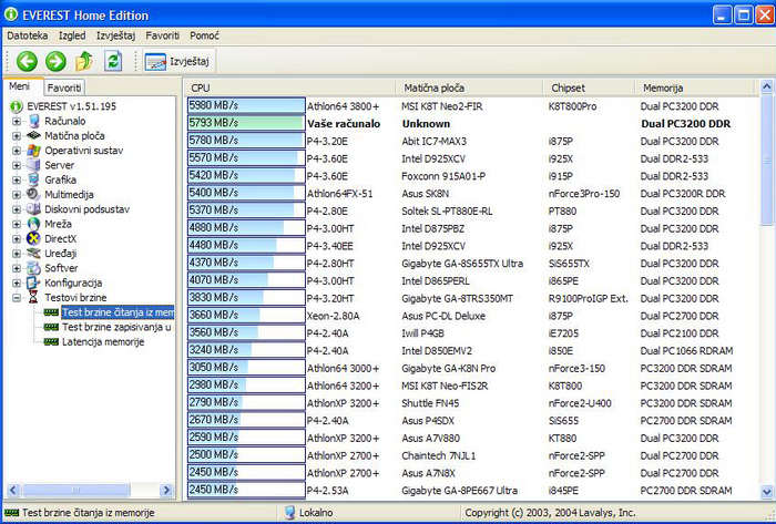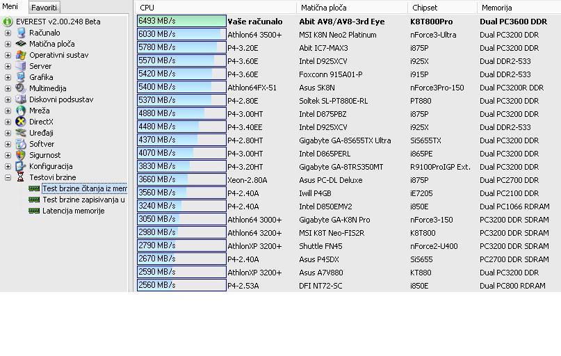 freakin nice brate.... al ipak je to A64 i 1gb, premda u biti kolko je razlika npr u everestu u performansama izmedu 512 i 1gb? |