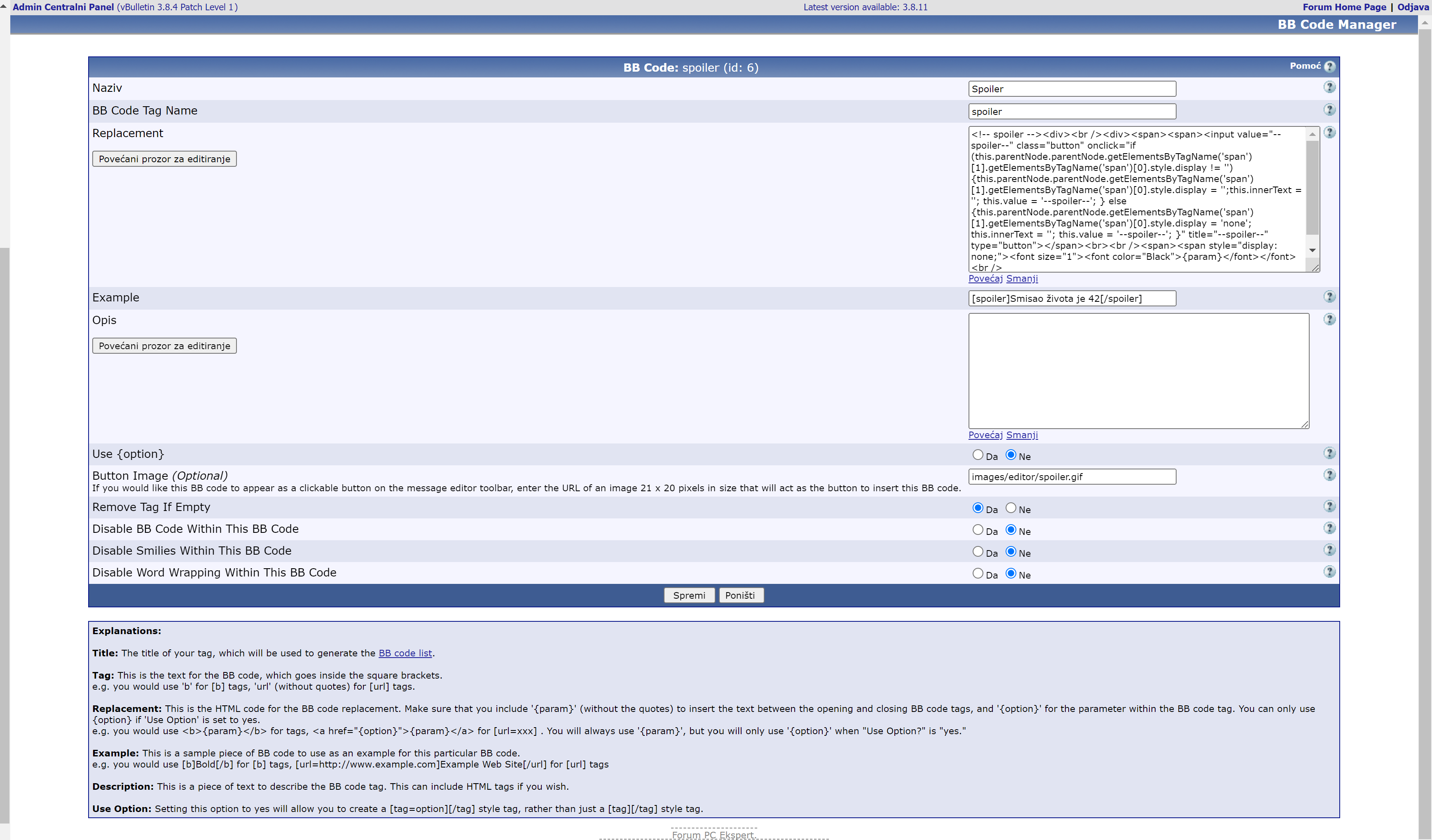 bb code manager da, preko njega ubacujem. Ovako izgledaju upute.