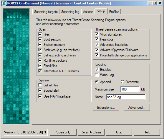 Hoće reći da prilikom On-Demand scan-a u Setupu aktiviraš (poklikaš) sve iz Scan i ThreatSense scanning options grupa. |