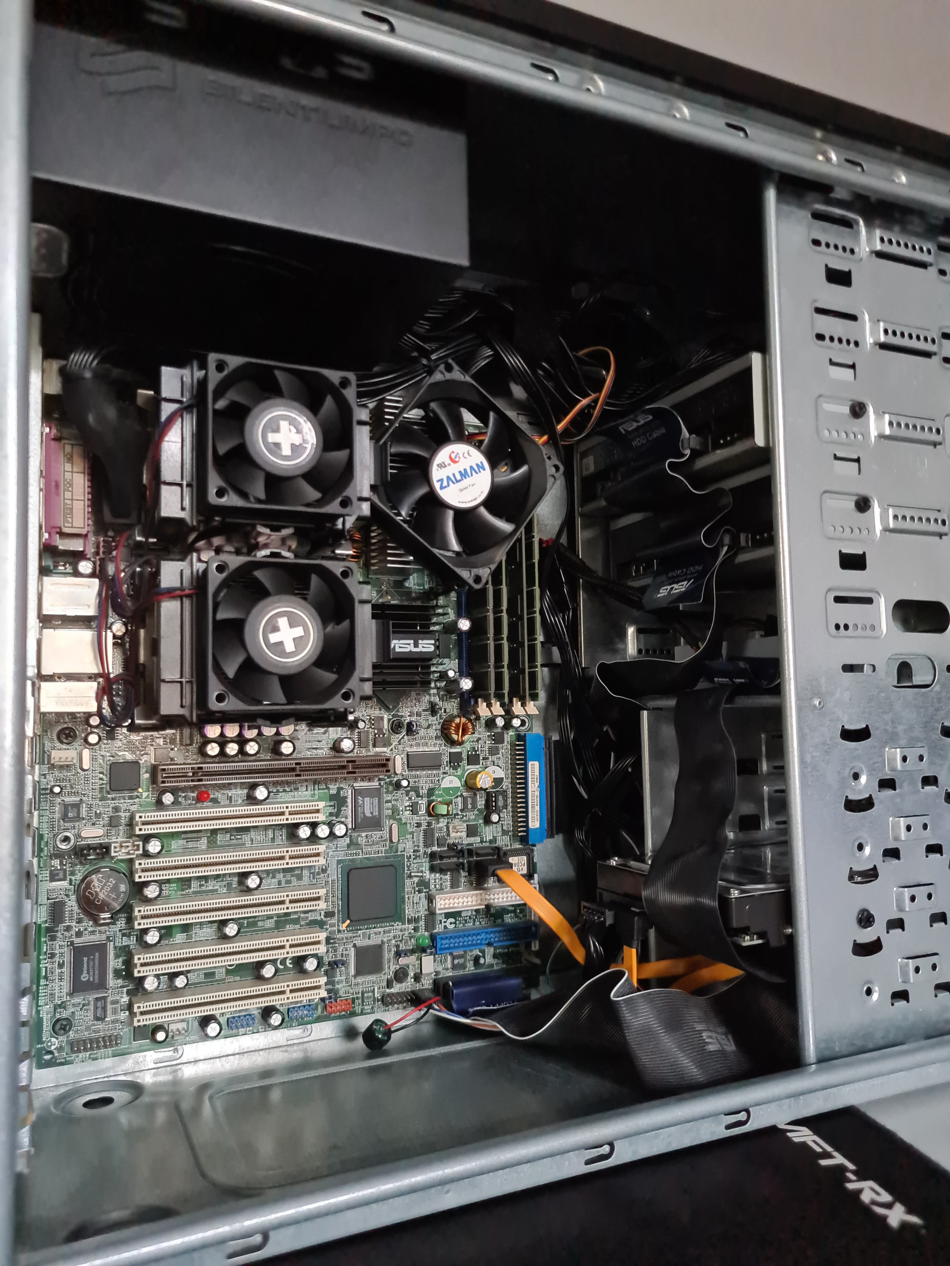 Ali mi zato Q6600 (dva komada) služe za sve ostalo. Full specifikacije su sljedeće: Mašina #1 (Coolermaster Cosmos) CPU: Intel Q6600 @3.00GHz OC (CoolerMaster Hyper 212EVO) MBO: MSI P43 Neo (MS-7519?) RAM: 4x 2GB DDR2 800 VGA: nVidia GTX760 (Gigabyte) HDD: 2x Hitachi DeskStar 320GB (SATA) ODD: 2x Philips DVD-RW (P/ATA) OS: Windows 7, Windows XP (SP3) Mašina #2 (Coolermaster Gladiator) CPU: Intel Q6600 @2.40GHz (CoolerMaster Hyper TX3) MBO: Gigabyte P31-ES3G RAM: 2x 2GB DDR2 800 VGA: nVidia 8800GT (MSI) HDD: Western Digital Green, 1TB & Hitachi DeskStar 320GB ODD: Samsung DVD-RW, Samsung DVD-ROM (+ Floppy) OS: Windows 7 U vezi performansi, rade svoj posao. Prva "Cosmos" mašina je naravno jača i brža, igram na njemu BeamNG Drive, GTA 5 i tome slično, u granicama je specifikacija osim ako forsiraš extra detalje ili puno sadržaja odjednom. YT i web rade savršeno, jedino što je Google Chrome kojeg koristim starija verzija, i onesposobljen mu je auto-update servis. Ne zbog tehničkih razloga i specifikacija, već zato što mi je bio pun k ... ufer beskonačnih nadogradnji, koje nikamo ne vode. Nadograđivan nekoliko puta, originalno je bio kupljen 2009. godine, specifikacijama gotovo pa identičnim drugoj mašini u nastavku: Druga mašina (Gladiator) je nešto u rangu GTA 4 ... ako možeš vizualizirati :) Originalno napravljena 2007. godine kao Pentium 4, sa X1600 grafičkom sve se mijenjalo i nadograđivalo u smjeru ovog što je danas. Jedino su matična i diskovi ostali stari, sve drugo je nadograđeno na ovakav ili onakav način. :fiju: 8800GT grafička je izvađena iz Cosmos mašine kad sam nabavio polovnu GTX760 ovdje na tržnici. Edit Ispravak, 8800GT je Gainward - nije MSI https://i.postimg.cc/FsbGKd0z/P-20180315-153427.jpg Slika Mašine #1 (Cosmos, slikano prilikom zamjene grafe) https://i.postimg.cc/k4364tBG/P-20170828-195847.jpg https://i.postimg.cc/RhGNXsGJ/P-20170828-203344.jpg Slika Mašine #2 (Gladiator) https://i.postimg.cc/k5HvHxP1/P-20180316-221133.jpg https://i.postimg.cc/26B7NVzz/P-20180316-221155.jpg Fun fact: Mašina #2, Gladiator se triput zapalila... Prvi put je otišao Thermaltake BlueOrb FX CPU cooler, i pošteno se "zasmrdio" procesor. Drugi put Iomega ZIP pogon (kojeg sam imao umjesto floppy diska), nešto u elektronici pogona je napravilo kratki spoj i krenulo se pošteno dimiti. Ugasio sam ga prije nego što su stvari izmakle kontroli. A treći put je otišao vent napajanja, te se isto počelo jako pregrijavati, a termalna zaštita se nije aktivirala. |