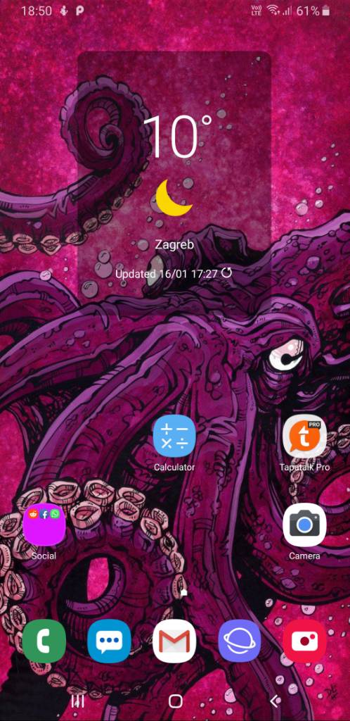 Updejtao burek i sad imam cijelo vrijeme prikazano vrijeme na lijevoj strani status bara. To je kao neka modifikacija za notch, kojeg S9 nema, ali naravno ne mogu to vrijeme maknut/pomaknut, a navodno ovisi i od teme (koristim Material Dark by Cameron Bunch).