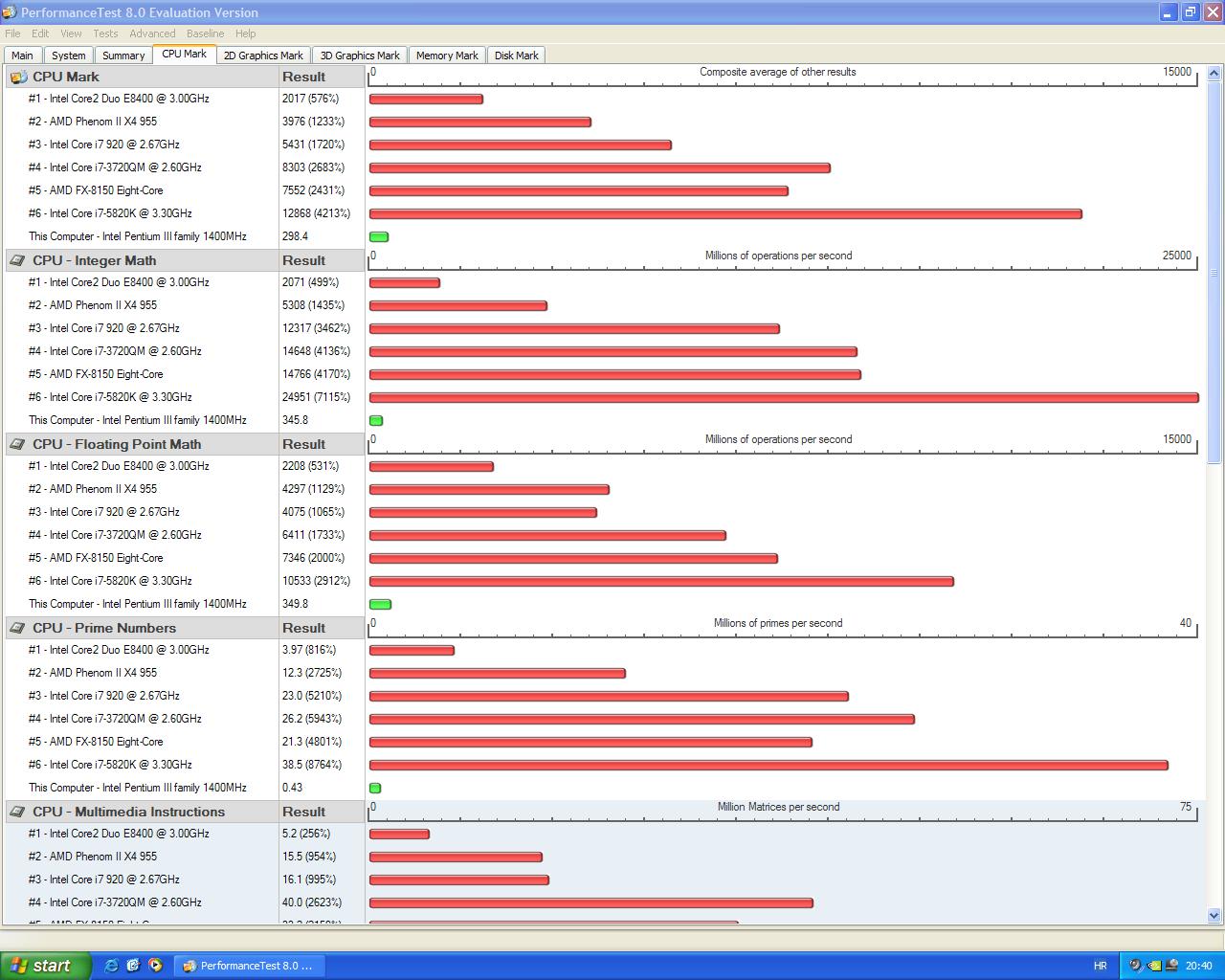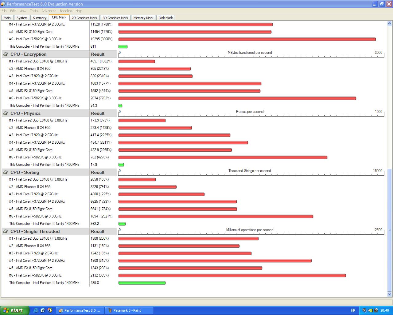 Privitak 24216Privitak 24217Privitak 24218Privitak 24219 PassMark P3 vs P4 @ 1.4 GHz Privitak 24220Privitak 24221Privitak 24222 Privitak 24223Privitak 24224Privitak 24225 SuperPi P3 vs P4 @ 1.4 GHz Privitak 24226Privitak 24227 3DMARK03 CPU TEST P3 vs P4 @ 1.4 GHz Privitak 24228Privitak 24229 CPU-Z Bench P3 vs P4 @ 1.4 GHz Privitak 24230Privitak 24231 |
