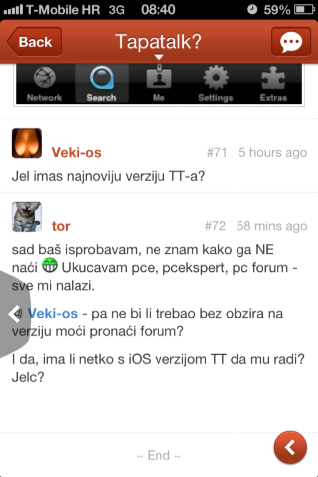 @ Veki-os - pa ne bi li trebao bez obzira na verziju moći pronaći forum? I da, ima li netko s iOS verzijom TT da mu radi? Jelc? |