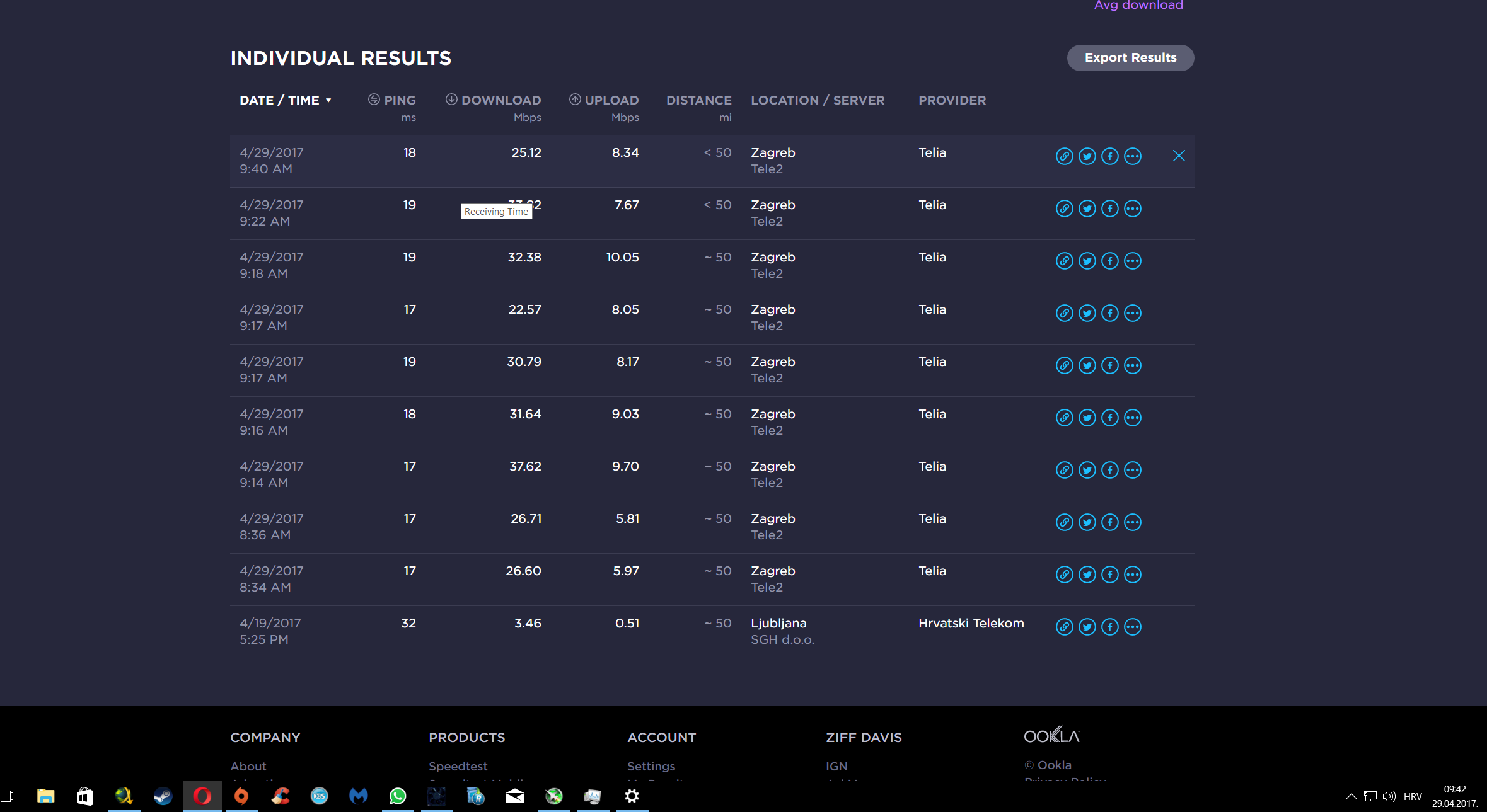 Lokacija: Đurđevac Ruter: na prozoru, okrenut prema jugu, drugi kat, kvart s kucama. Brzine moram priznat osciliraju, jedino sto je konstantno je ping. Ping preme tele2 serveru u zagrebu je 14-15 (konstantnih), prema ostalim serverima (optima 14-17, vip 15), cak i prema inozemnim serverima (amis slovenija 24, citycom austrija 25) je bolji nego prema t-comu koji iznosi 38-40. DL je u prosjeku oko 36 megabita, upload oko 46 megabita... tu i tamo poludi pa skoci do 45 mbita u downloadu... kompletni rezultati su ovdje: http://image.prntscr.com/image/70032...e37f2ce8aa.jpg U mobitel sim-icu ne mogu stavit jer je full size sim card :/ |