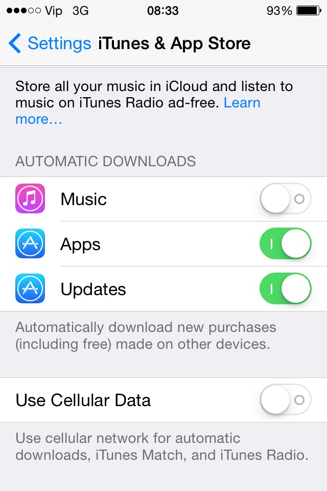 Settings - iTunes & App Store - Automatic downloads i ispod toga ima "Use Cellular data"
