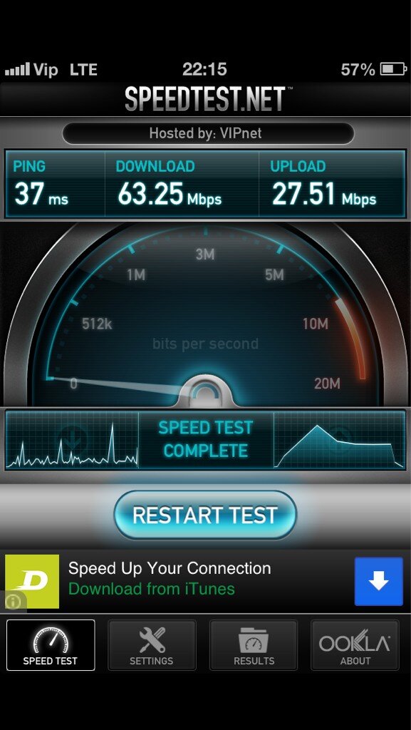 Najniža brzina unutar FER-a mi je bila oko 15mbit... Unutar zgrada i debelih zidova ne ide ispod 10mbit. Nisam vjerovao, al razlika između 3G i ovog je prilično očita. Kad surfaš, stranica na kojoj si bio nestane, a ova na koju dolaziš se samo pojavi. Nema nikakvog učitavanja, kao da ih iz cachea vadi. U VIPu je LTE opcija 30kn. Razumno, ako se mene pita! Samo što je promet problem. U T-mobileu ne znam kolko će bit. Ujutro nisam imao LTE signala u stanu, sad kad sam došo imam - 30/18mbit. Neloše. :D |