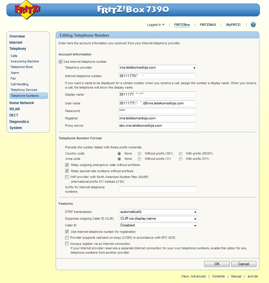 Kako podesiti FritzBox 7390 za Telekom BBTF (voice/sip deo)?