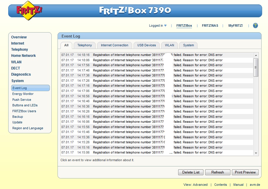 Barem ja ne vidim da si nesto krivo unijeo u Fritz!Box. Da nije mozda Fritz!OS prestar? Postoji verzija 6.53 za 7390. Nece ti raditi telnet ali mislim da mozes vratiti opet staru verziju poslije ako napravis backup.