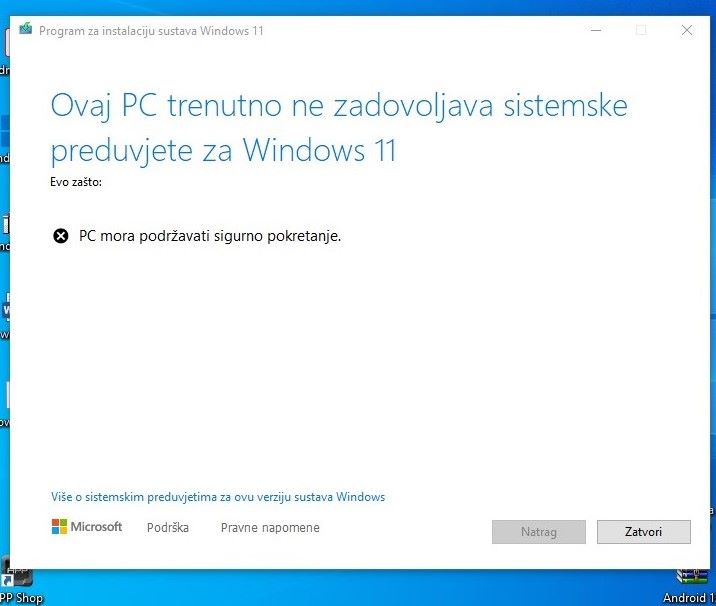 Što da napravim, ustvari sve sam pokušao, mbo i cpu zadovoljavaju, TPM isto tako, itd itd. Win 11 skinut sa Godeal24 i ključ 13,5 EUR-a a ne mogu rješiti ovo sigurno otvaranje.