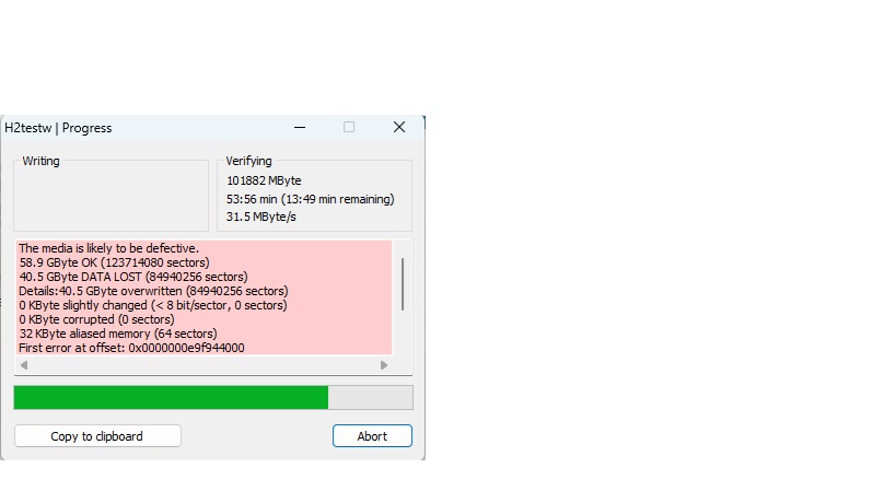 Počeli su problemi nakon nekog vremena korištenja, kako se memorija puni došlo je do problema pregledavanja videozapisa, videozapis postoji ali se ne može pogledati. Testiram karticu sa H2test softverom. Rezultati: Privitak 28131 Dali je to memorijska kartica 64 Gb reklamirana kao 128Gb? Vrtim test drugi puta isti rezultat bude kako mi se vidi? |