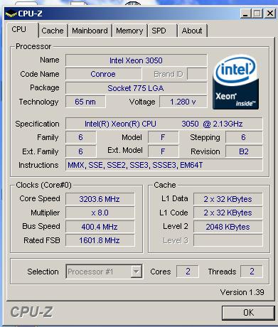 Everest kaže Allendale jezgra.. OCCT kaže Woodcrest jezgzgra.. A CPU-Z kaže Conroe.. Kome vjerovati... |