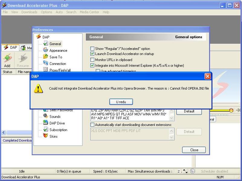 ne mogu integrirati DAP u Operu,kada hoću uključiti postavku za integriranje javi mi da ne može naći OPERA.INI file. ne kužim kako ovo riješiti?
