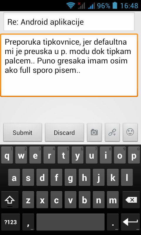 Preporuka tipkovnice, jer defaultna mi je preuska u p. modu dok tipkam palcem.. Puno gresaka imam osim ako full sporo pisem..