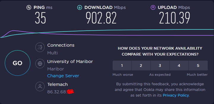 Speedtest prema serverima van Telemacha daje cca 900/200 brzinu, dok prema Telemachu jedino imam 900/500.