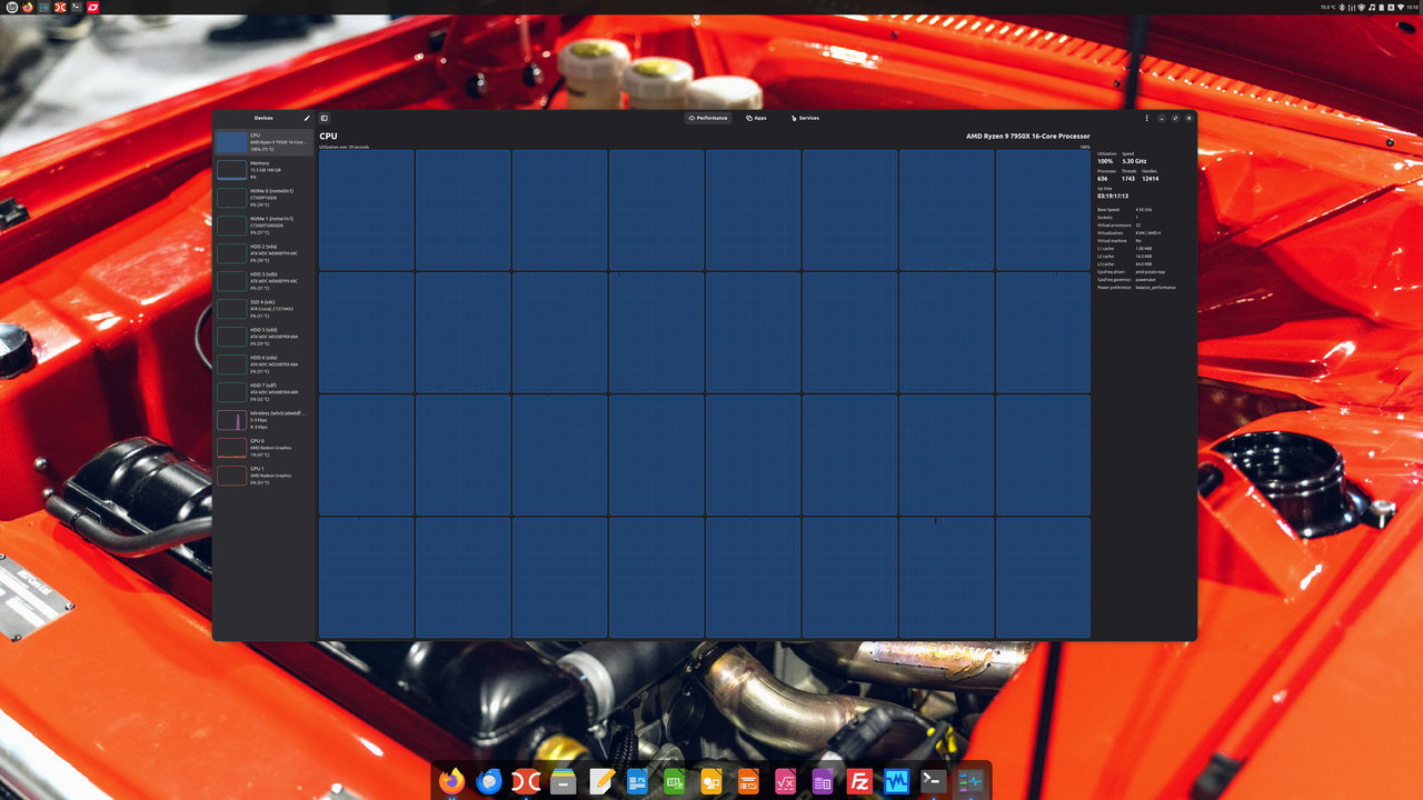 Diskovi koji su se cijelo vrijeme godinama koristili na Windows OS-u, prilikom prelaska na Linux, odnosno prilikom LMDE 7 instalacije, ostavljeni su u svojim orginalnim NTFS izdanjima, uključujući i sam Windows 11 Pro 25H2 SSD, tako da taj dio priče što je više moguće ostane u 1:1 režimu. AMD Ryzen 9 7950X CPU je još od prvog dana kroz BIOS podešen na
