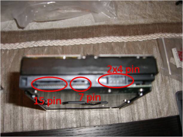 Ne, zanemari to. Napajanje ide preko 15-pinskog, a podaci preko 7-pinskog plosnatog SATA konektora. Ovih 8 "iglica" na disku su za SATA mod, SSC i servisne stvari, a na playeru pojma nemam čemu služi.