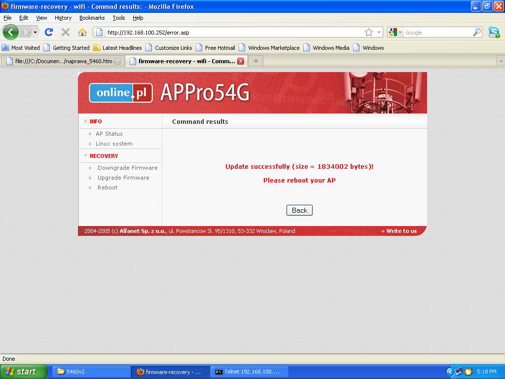 OvisLink 5460v2 - ne mogu uploadati tvornički firmware