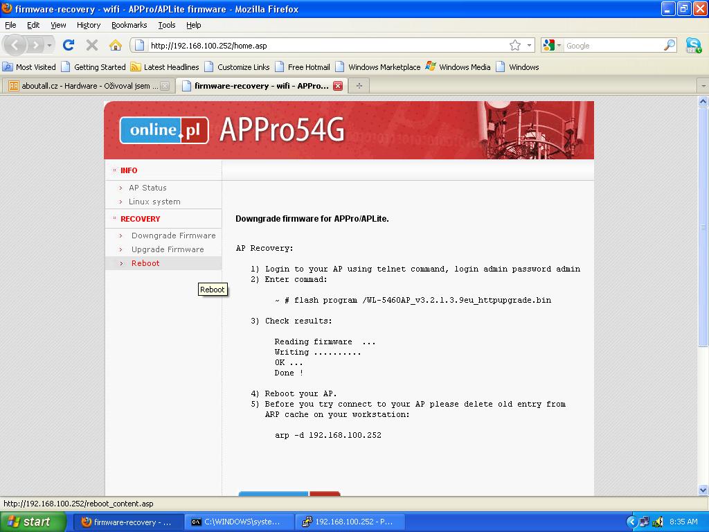 Koliko sam ja skužio, ova procedura omogućuje povratak na origigi OvisLink (AirLive) fw. Zadnji origigi je e18. Možda da prvo staviš tu ili neku drugu original verziju pa tek onda željeno. Šta fali toj verziji u odnosu na "fabricku intermediu" ? Zanemari ovo, upravo prošao demo. Evo ostali linkovi: APProSoftware, recovery, files. Trebaš naći "odgovarajući" image (fw). |