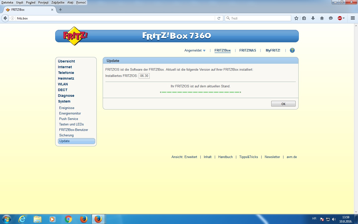 Trenutno je unutra FRITZ!OS 06.20 a moze se nadogradit na