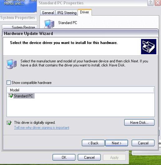 Imao sam komp na ACPI i nest mi stala zvucna (Soundstorm) i prebacio sam na PC standard i sad sam otkrio problem tog sranja koje je srala zvucna i trebam prebacit na ACPi ali ga nema vise tamo pogledate screenshot.