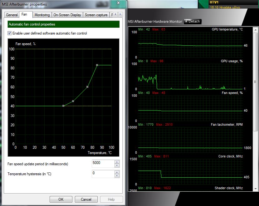 Ja imam MSI Afterburner instaliran i u njemu podešenu regulaciju ventilatora. Nisam čuo Gigabyteovu karticu u radu a ova moja MSI je stvarno tiha. Čak ni uz najveće opterećenje mi temperatura ne prelazi 63°C a brzina ventilatora ne dođe ni do 50%. |
