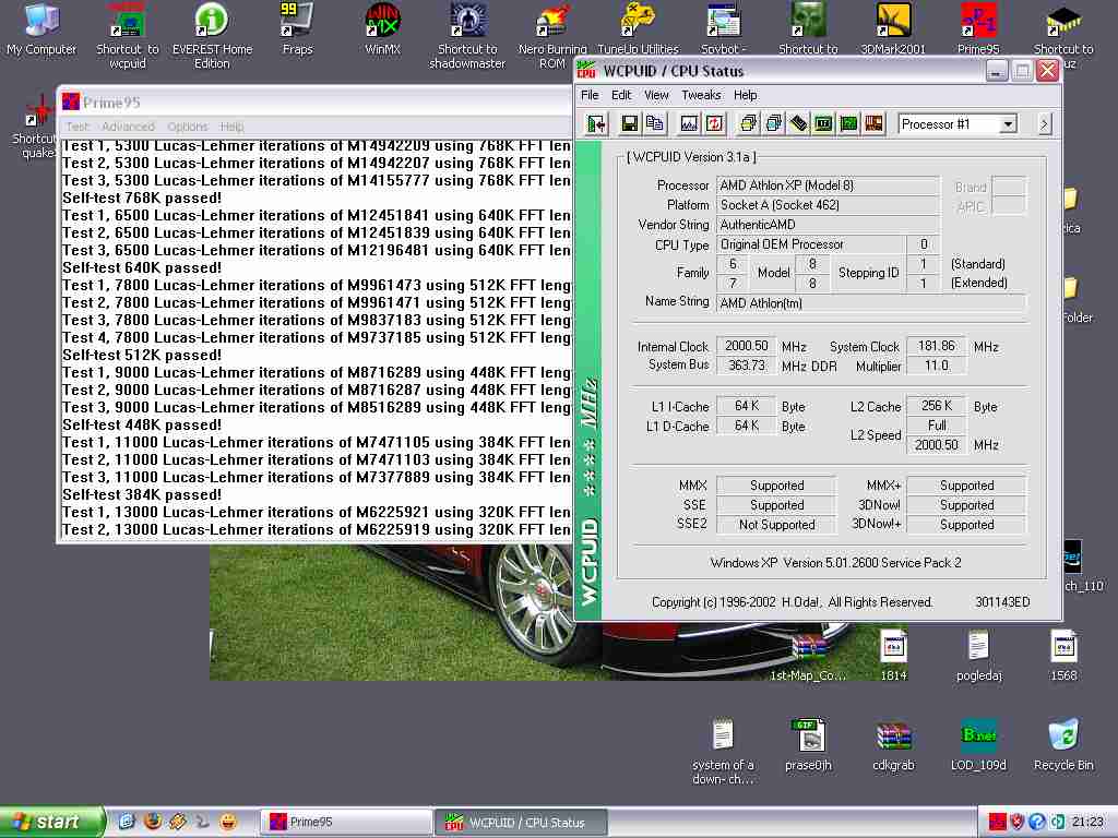 Evo sad radi stabilno na 2000 Mhz. 11x182 pri 1.75 V. To mi sad nije jasno, kako moze sad bit stabilno pri toj frekvi a nemoze na 219 x9 (sto daje 1980 Mhz) pri istoj ili visljoj voltazi??? Stvarno mi nije jasno i ne znam u cemu je problem?