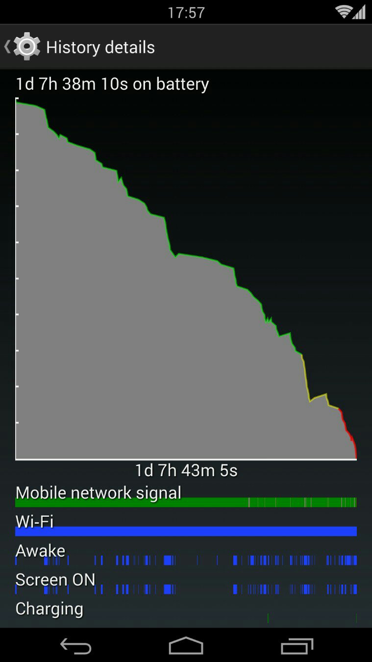 Prosli su me oni dani kada non stop nesto diram po mobu pa sada mogu napisati neki presjek zapazanja. Znaci Nexus 5+Cataclysm+ElementalX 0.23. UV -625mV, 300MHz 700mV, UC 300-1500 MHz.*Postavke kernela: fsync ON, (un)lock opcije OFF, custom color, MPD ON, gboost OFF, touchboost ON, row scheduler. Casual day: ATTACH 1 ATTACH 4 SoT 5:40h Ingress oko pola sata, mrezno pozicioniranje 80% wifi, 20% 2G, Tapatalk, Chrome, sva sila chatova, pola sata muzike, malo youtubea. Busy day: ATTACH2 ATTACH3 SoT 5:30h Ingress kao iz prilozenog, oko 2h GPS + SoT (jedan dio sam ga koristio na mreznom pozicioniranju sto se ne vidi iz statistike, ali je ukljuceno u ukupan SoT) 50% wifi, 50% 3G Tapatalk, Chrome, sva sila chatova, pola sata muzike, malo youtubea. Kako god okrenem, mob mi sve cesce izdrzi od jutra do navecer. Ovisno o Ingressu je hoce li izdrzati od jutra do sutra ![]() Eh sta bi bilo da su u ovaj hardver ubacili bateriju od G2, haos.
