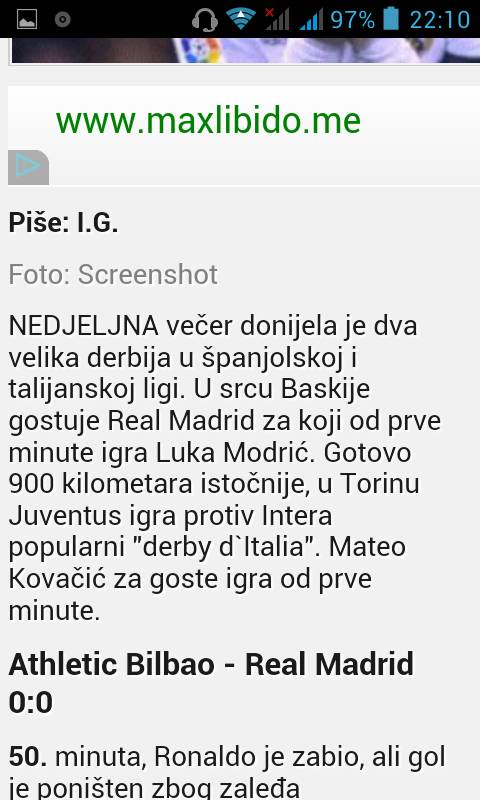 Na mobitel browseru ti vjerojatno nije ukljucena opcija kada dva puta tapnes po ekranu da se text automatski zumira i prikaze u CIJELOSTI na ekranu. Sa time se izbjegne pomicanje texta prstom u slucaju da prikaz texta ne stane u ekran.. Pored toga, Index.hr ima mobile verziju koja funkcionira dobro a k tome i zumiranje texta radi kako treba, evo primjer sa 5" mobitela: Jedna fotka je normalno bez zumiranja a druga fotka je nakon duplog tapkanja po ekranu.. |
