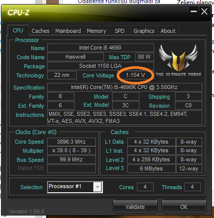 pozdrav dobri ljudi. imam pitanje za oc i5 4690k. imam asus z97 mark2 plocu, 8gb rama, chieftec 650w napajanje. moje pitanje je: da li zna neko sta treba da namestim u biosu kad stavim voltazu na manual, da bi voltaza padala sa brzinom takta???? znaci kad mi je brzina 800mhz da mi skine automatski voltazu, kad je procesor u load-u da je automatski digne. Enhanced intel speedstep technology ako ukljucim on mi samo spusta cpu na 800mhz, a voltazu ne. |