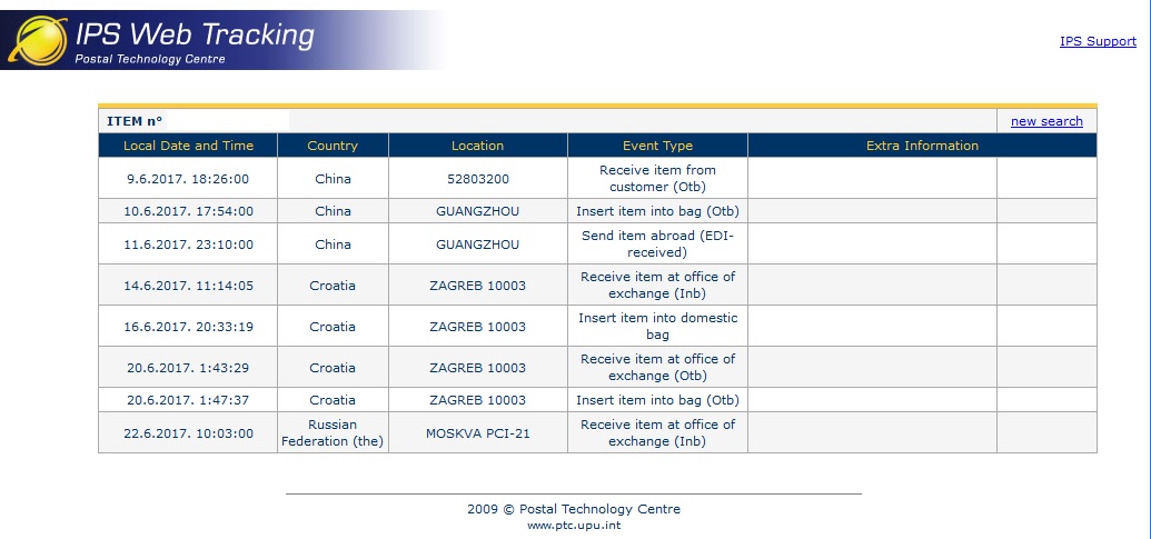 Naručio kutiju za satove na ebaya. Kutija uredno iz Kine došla u ZG 14.06. Nisam dobio nikakvu obavijest od pošte da je išta stiglo za mene. Jučer produžila za Moskvu(?!).