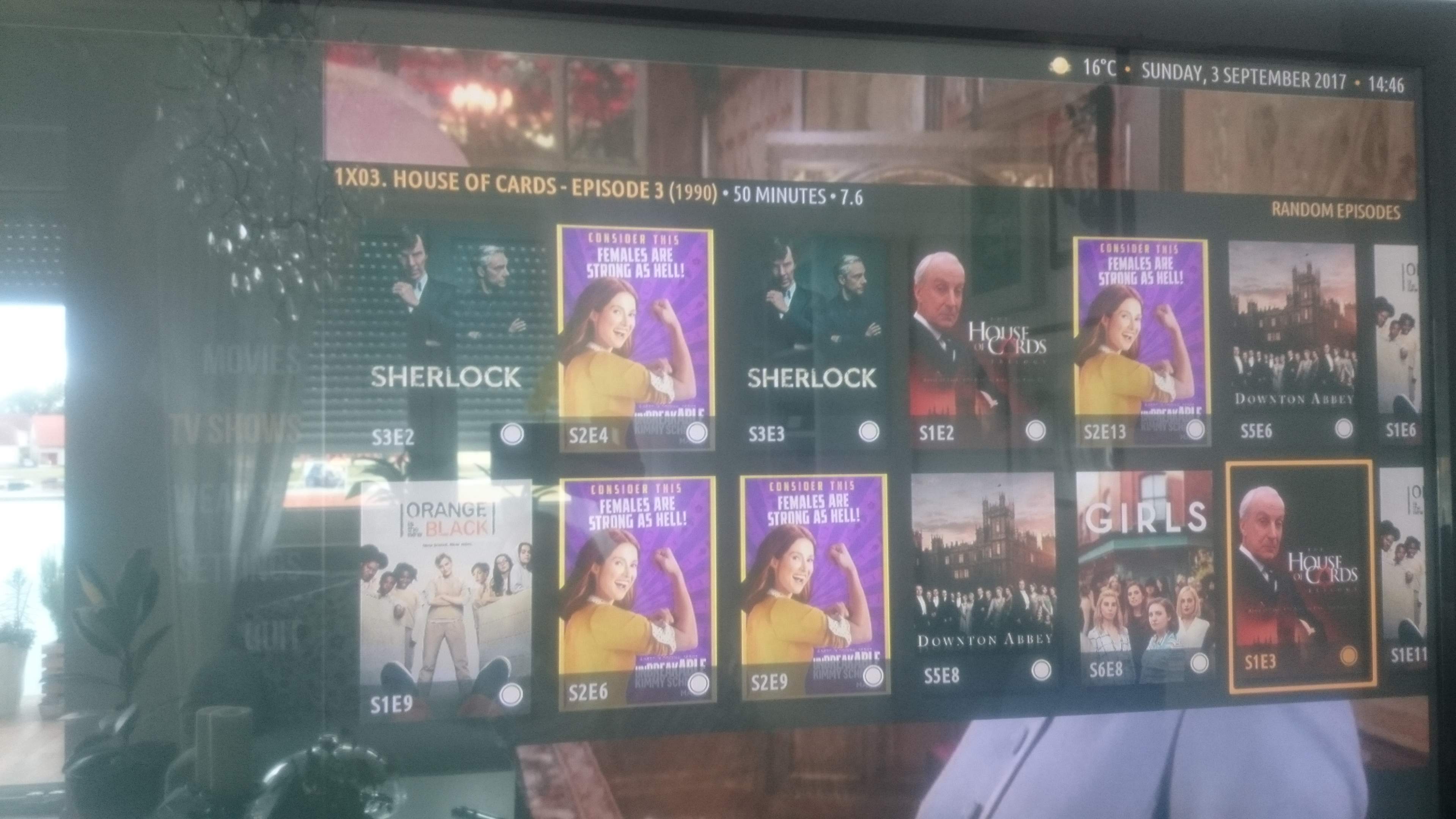 Sad je dobro, izgleda da je bilo do nazivlja foldera. Tipa pisalo je Sherlock_S03, a trebalo je samo Sherlock i onda prepozna. Jedino mi sad ne stvrstava tv shows kao pojedine serije nego mi izbacuje sve epizode. I house of cards npr je fanart i info od ove britanske iz 1990 i to isto ne znam kak promjeniti. Znas mozda za te 2 stvari kak popraviti? Probao sam na skin settings, ali nisam uspio. I ima koji bolji scraper za serije od tvdb EDIT: Uspio sam složiti da prikazuje serije, a ne pojedinacne epizode. Pod skin settings i home shelfs sam stavio hide sve osim unwatched tv shows, jedino bude se sad kad pogledam seriju ta serija maknula. EDIT2: Skuzil sam i za house of cards. Treba samo folder preimenovati u house of cards (US). Znaci ako imate remake neke serije samo na kraju u zagradu stavite (US) ili (UK) ili koja je vec drzava u pitanju.